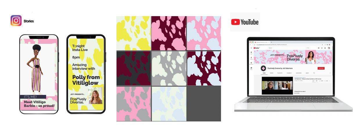 Featuring three unique patterns - reflecting the diverse patterns found in vitiligo - coupled with vibrant colour combinations